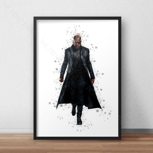 Superhero 'NICK FURY' Marvel Watercolour Splash Wall Art Print