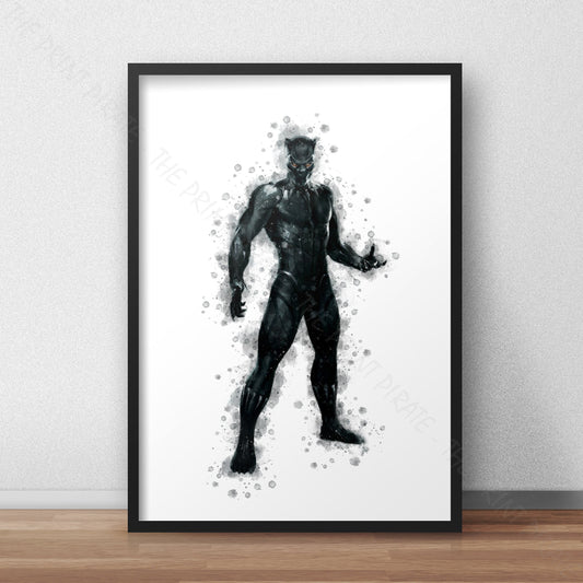 Superhero 'BLACK PANTHER' Marvel Watercolour Splash Wall Art Print