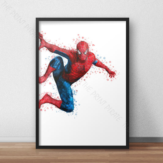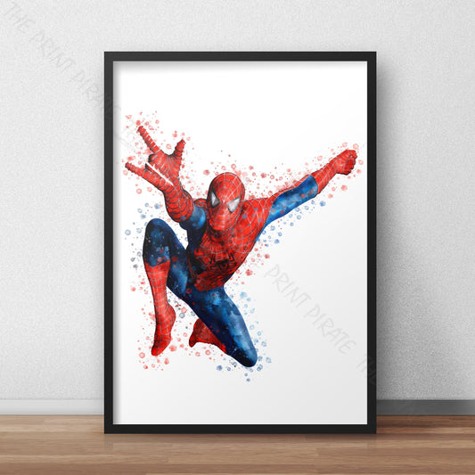 Superhero 'SPIDERMAN' Swinging No.5 Marvel Watercolour Splash Wall Art Print