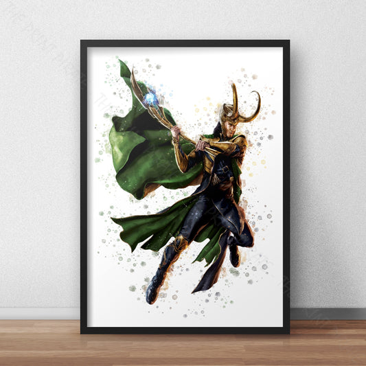 SuperVillain 'LOKI' Marvel Watercolour Splash Wall Art Print