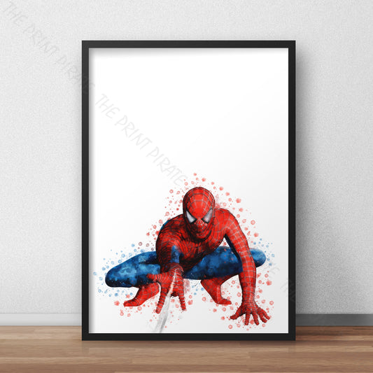 Superhero 'SPIDERMAN' Crouching No.2 Marvel Watercolour Splash Wall Art Print