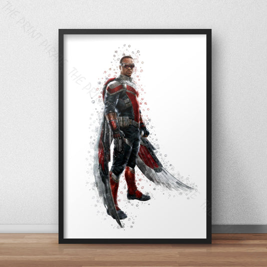 Superhero 'FALCON' Marvel Watercolour Splash Wall Art Print