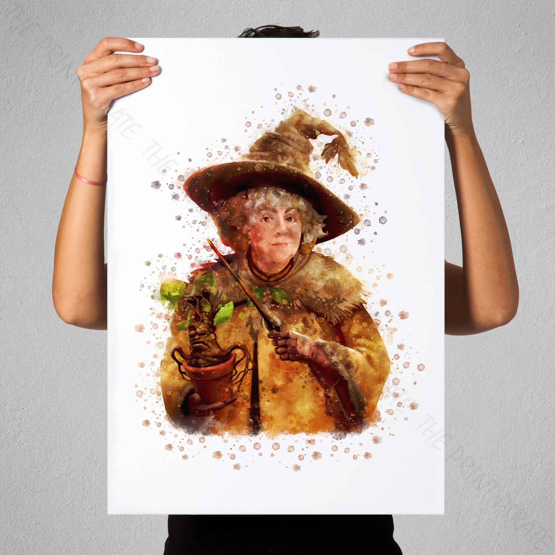 Wizarding World 'PROFESSOR SPROUT' Hogwarts Harry Potter / Fantastic Beasts Watercolour Splash Wall Art Print