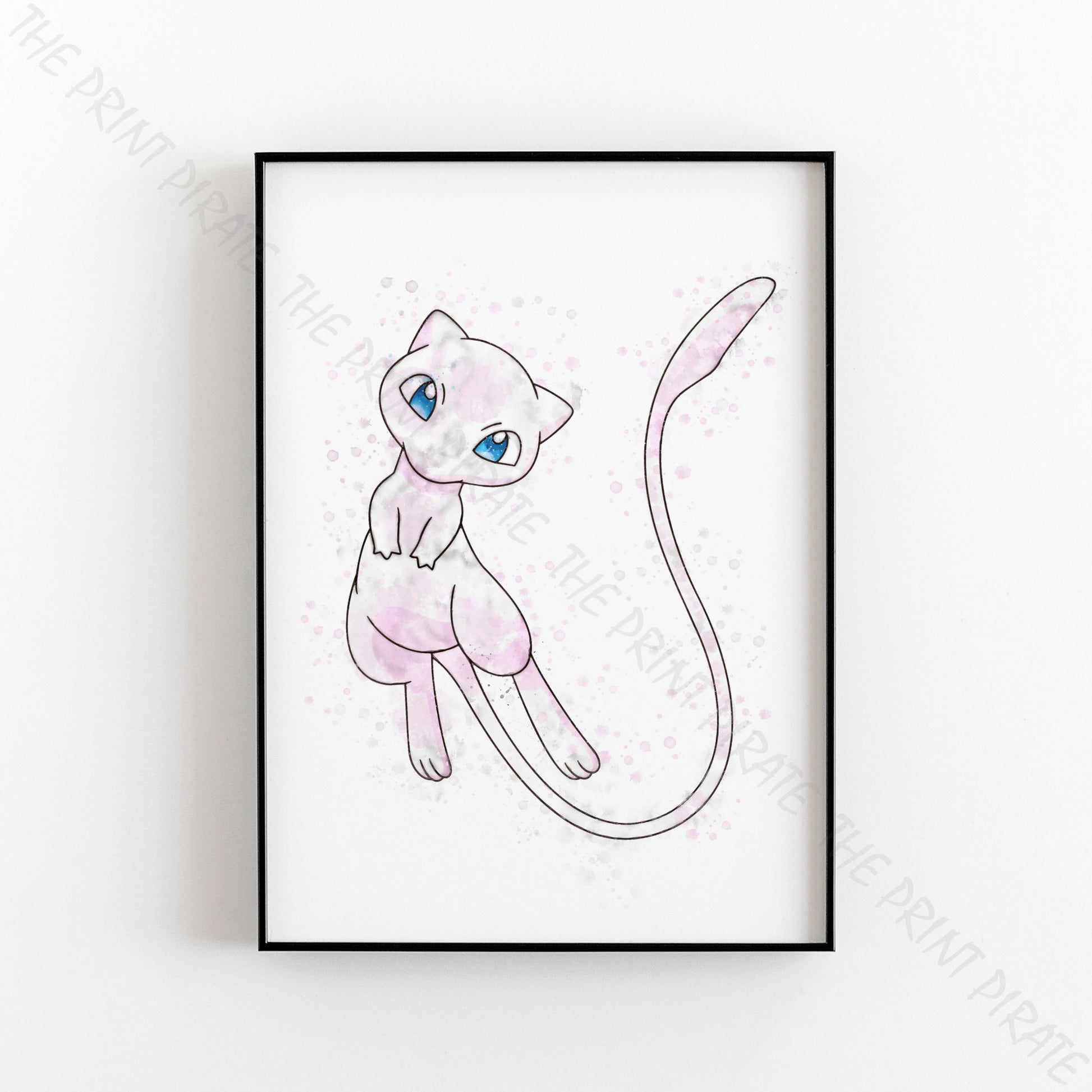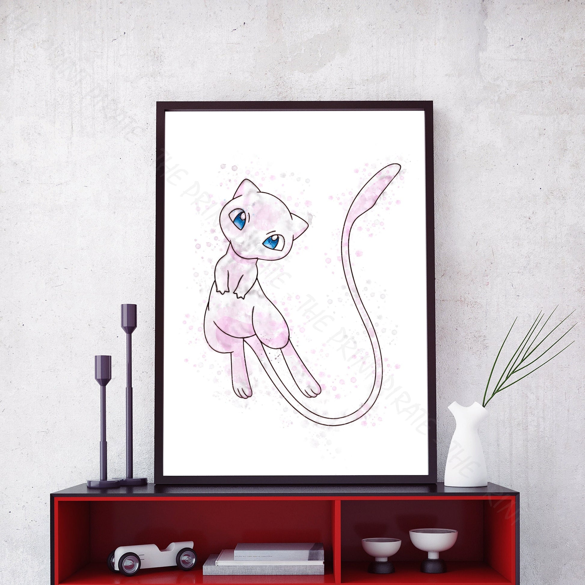 Pokemon 'MEW' Watercolour Splash Wall Art Print