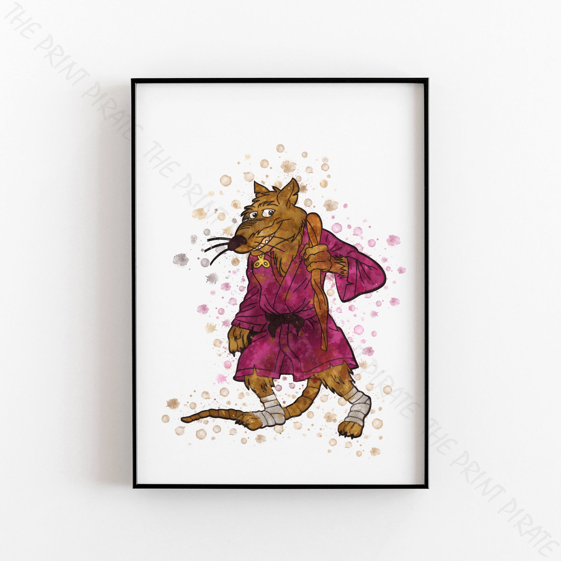 Teenage Mutant Ninja Turtles 'SPLINTER' Watercolour Splash Wall Art Print