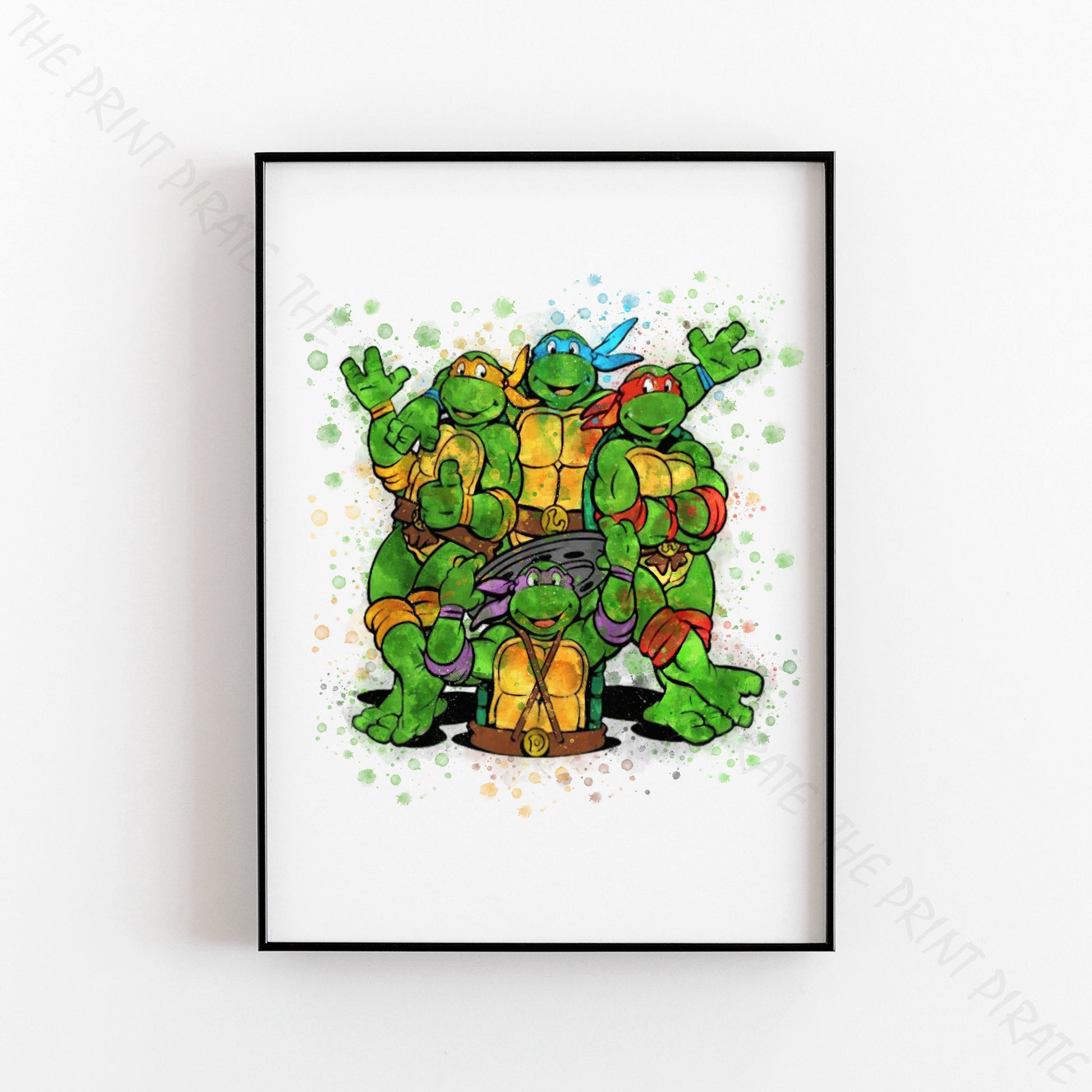 Teenage Mutant Ninja Turtles 'TURTLE GROUP' Watercolour Splash Wall Art Print